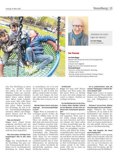 Interview. In der Erziehung von Buben treten viele Fragen auf, auch weil neue Rollenbilder entstehen. Alte Muster gelten nicht mehr. Sie sollen keine Machos werden, aber auch keine Softies. Erziehungsberater Jan-Uwe Rogge will Eltern und Pädagogen in einem Seminar helfen, sich in der Vielfalt von widerstreitenden Rollenbildern für eine moderne Jungenerziehung zu orientieren.