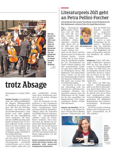 Literaturpreis des Landes Vorarlberg: erneut Förderpreis für Nils Nußbaumer, weiterer Preis für Ingrid Maria Kloser.