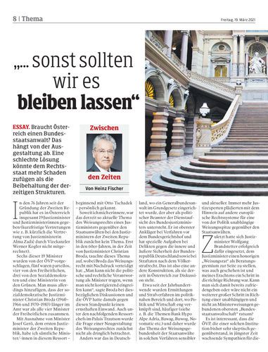ESSAY. Braucht Österreich einen Bundesstaatsanwalt? Das hängt von der Ausgestaltung ab. Eine schlechte Lösung könnte dem Rechtsstaat mehr Schaden zufügen als die Beibehaltung der derzeitigen Strukturen.
