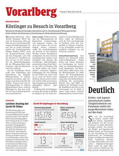 Ministerin Elisabeth Köstinger informierte sich in Vorarlberg über Öffnungsschritte. Grüne fordern Zustimmung zu Verordnung zur Herkunftskennzeichnung.