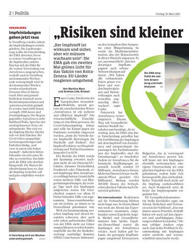 Impfungen. Grünes Licht für das Weiterimpfen mit AstraZeneca. Die Gesundheitsbehörde EMA versieht den Beipackzettel jedoch mit einem Warnhinweis wegen selten aufgetretener Fälle von Blutgerinnseln. Seiten 2/3 Jürgen fuchs, AFP, Adobestock
