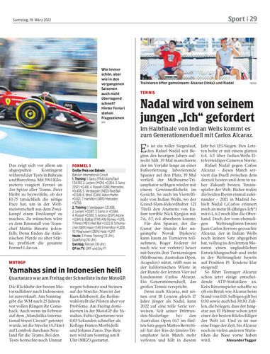 Im Halbfinale von Indian Wells kommt es zum Generationenduell mit Carlos Alcaraz.
