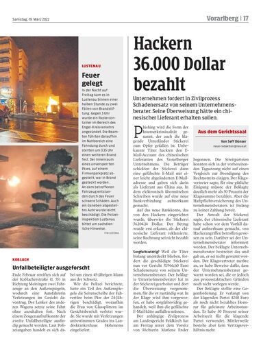 Unternehmen fordert in Zivilprozess Schadenersatz von seinem Unternehmensberater. Seine Überweisung hätte ein chinesischer Lieferant erhalten sollen.
