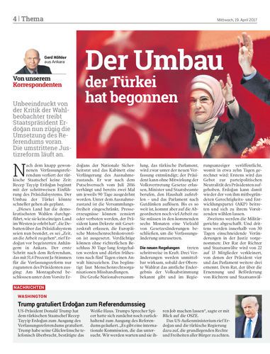 Unbeeindruckt von der Kritik der Wahlbeobachter treibt Staatspräsident Erdoğan nun zügig die Umsetzung des Referendums voran. Die umstrittene Justizreform läuft an.