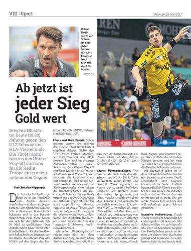 Bregenz HB startet heute (19.30) daheim gegen den ULZ Schwaz ins HLA-Viertelfinale. Die Tiroler dominierten das Untere Play-off und sind für die Hedin-Truppe ein ernstzunehmender Gegner.