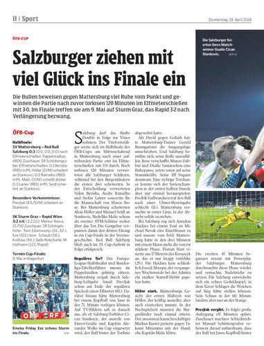 Die Bullen beweisen gegen Mattersburg viel Ruhe vom Punkt und gewinnen die Partie nach zuvor torlosen 120 Minuten im Elfmeterschießen mit 3:0. Im Finale treffen sie am 9. Mai auf Sturm Graz, das Rapid 3:2 nach Verlängerung bezwang.