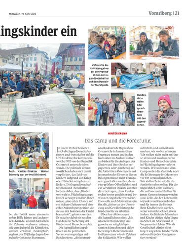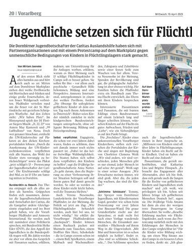 Die Dornbirner Jugendbotschafter der Caritas Auslandshilfe haben sich mit Partnerorganisationen und mit einem Protestcamp auf dem Marktplatz gegen unmenschliche Bedingungen von Kindern in Flüchtlingslagern stark gemacht.