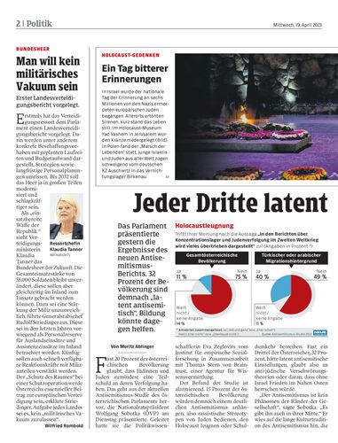 Das Parlament präsentierte gestern die Ergebnisse des neuen Antisemitismus- Berichts. 32 Prozent der Bevölkerung sind demnach „latent antisemitisch“, Bildung könnte dagegen helfen.