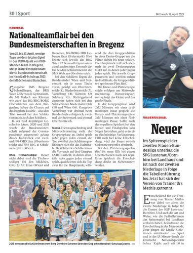 Von 25. bis 27. April, wenige Tage vor dem letzten Spiel in der EURO-Quali von ÖHB-Männer-Team in Bregenz, steigt in der Festspielstadt die 41. Bundesmeisterschaft im Handball-Schulcup 2023 der Mädchen und Burschen.