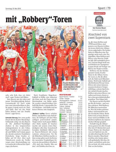 Bayern München gewinnt am letzten Spieltag 5:1 gegen Eintracht Frankfurt. Damit feiert der deutsche Rekordmeister den siebten Meistertitel in Folge.