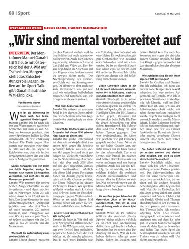 Interview. Der Montafoner Manuel Ganahl trifft heute mit Österreich bei der A-WM auf Tschechien. Morgen steht das Entscheidungsspiel gegen Italien an. Im Sport-Talk gibt Ganahl hautnahe WM-Einblicke.