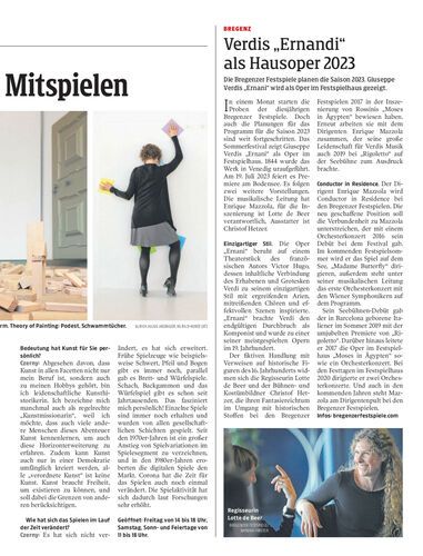 Die Bregenzer Festspiele planen die Saison 2023. Giuseppe Verdis „Ernani“ wird als Oper im Festspielhaus gezeigt.