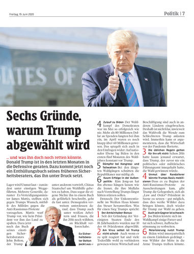 WAHLKAMPF IN KRISENZEITEN. US-Präsident Donald Trump gerät vor der Wahl im November immer stärker unter Druck. Doch eine Wiederwahl ist für den umstrittenen Staatsmann noch lange nicht außer Reichweite. Seiten 6/7 AP