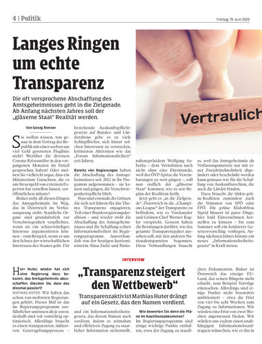 Die oft versprochene Abschaffung des Amtsgeheimnisses geht in die Zielgerade. Ab Anfang nächsten Jahres soll der „gläserne Staat“ Realität werden.