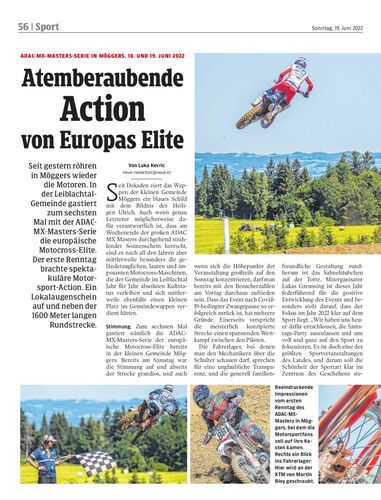 Seit gestern röhren in Möggers wieder die Motoren. In der Leiblachtal-Gemeinde gastiert zum sechsten Mal mit der ADAC-MX-Masters-Serie die europäische Motocross-Elite. Der erste Renntag brachte spektakuläre Motorsport-Action. Ein Lokalaugenschein auf und neben der 1600 Meter langen Rundstrecke.