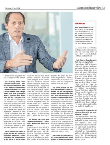 Interview. Das wahre Tierwohl-Volksbegehren finde täglich vor den Regalen statt, meint der frisch wiedergewählte Präsident der Landwirtschaftskammer Österreich, Josef Moosbrugger. Der Vorarlberger pendelt zwischen Stall und Wien und ärgert sich über „fehlenden Hausverstand in Brüssel“ bei der Energie- und Lebensmittel-Abhängigkeit. Und natürlich geht’s auch um den Wolf. Von Ulrich Dunst