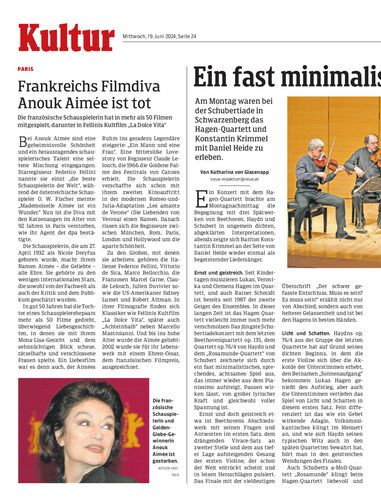 Am Montag waren bei der Schubertiade in Schwarzenberg das Hagen-Quartett und Konstantin Krimmel mit Daniel Heide zu erleben.