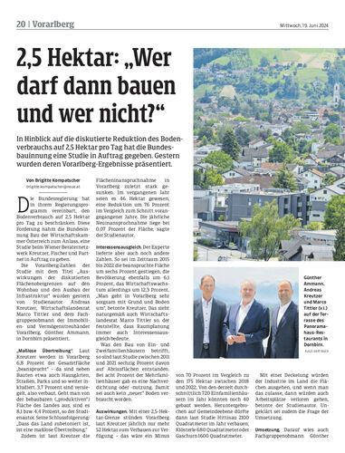 In Hinblick auf die diskutierte Reduktion des Bodenverbrauchs auf 2,5 Hektar pro Tag hat die Bundes-bauinnung eine Studie in Auftrag gegeben. Gestern wurden deren Vorarlberg-Ergebnisse präsentiert.