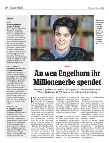 Marlene Engelhorn verteilt ihr Vermögen von 25 Millionen Euro auf 77 Organisationen. 102.550 Euro davon gehen nach Vorarlberg.