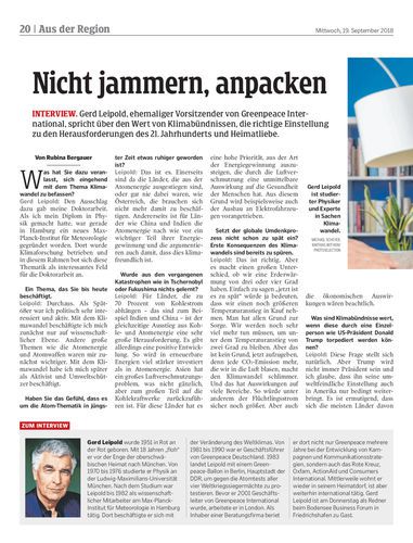 Interview. Gerd Leipold, ehemaliger Vorsitzender von Greenpeace International, spricht über den Wert von Klimabündnissen, die richtige Einstellung zu den Herausforderungen des 21. Jahrhunderts und Heimatliebe.