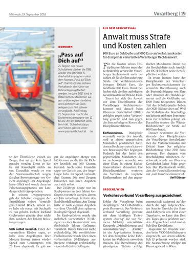 800 Euro an Geldbuße und 1000 Euro an Verfahrenskosten für disziplinär verurteilten Vorarlberger Rechtsanwalt.