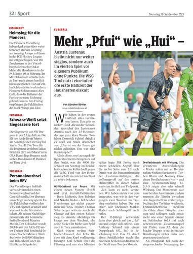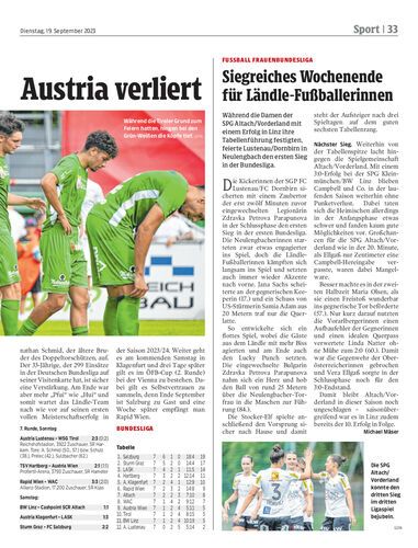 Während die Damen der SPG Altach/Vorderland mit einem Erfolg in Linz ihre Tabellenführung festigten, feierte Lustenau/Dornbirn in Neulengbach den ersten Sieg in der Bundesliga.