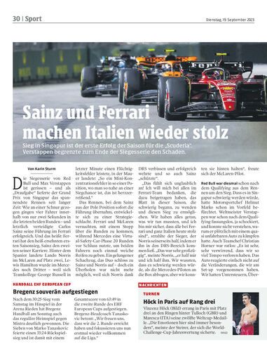 Sieg in Singapur ist der erste der Erfolg der Saison für die „Scuderia“; Verstappen begrenzte zum Ende der Siegesserie den Schaden.