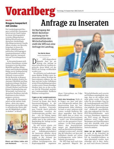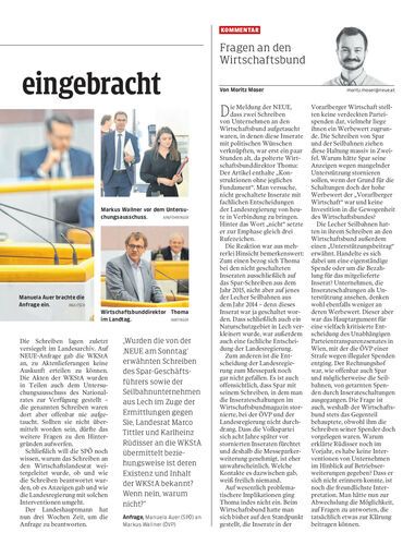 Im Nachgang der NEUE-Berichterstattung zur Inseratenaffäre des Wirtschaftsbundes stellt die SPÖ nun eine Anfrage im Landtag.