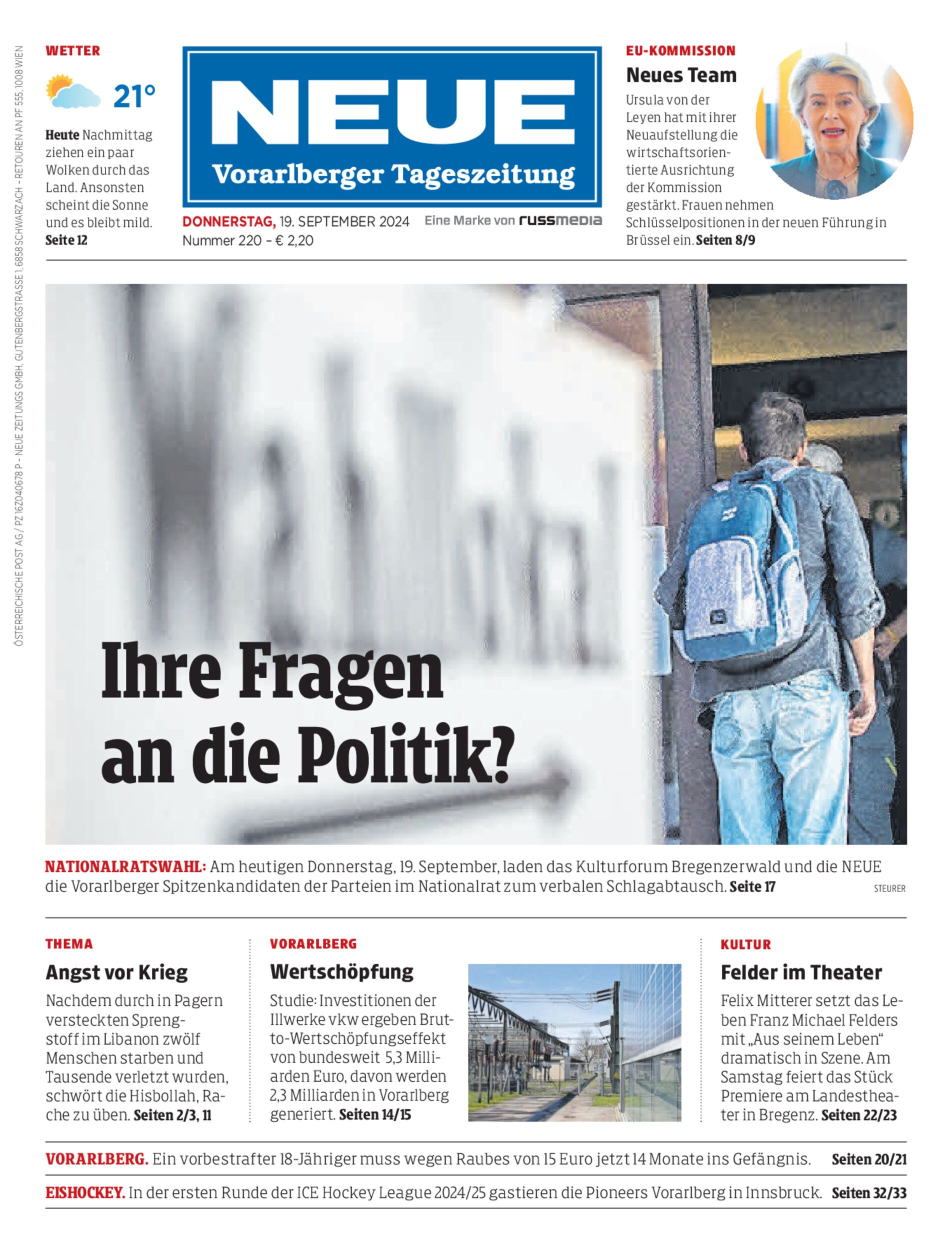 Nationalratswahl: Am heutigen Donnerstag, 19. September, lädt das Kulturforum Bregenzerwald und die NEUE zum verbalen Schlagabtausch.