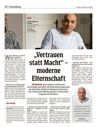 Interview. Idan Amiel ist klinischer Psychologe und leitet die Elternberatungsstelle am Schneider Children’s Medical Center in Israel. Kommende Woche gastiert er beim Pina-Kongress in Dornbirn.