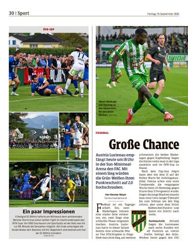 Austria Lustenau empfängt heute um 18 Uhr in der Sun-Minimeal-Arena den FAC. Mit einem Sieg würden die Grün-Weißen ihren Punkteschnitt auf 2,0 hochschrauben.
