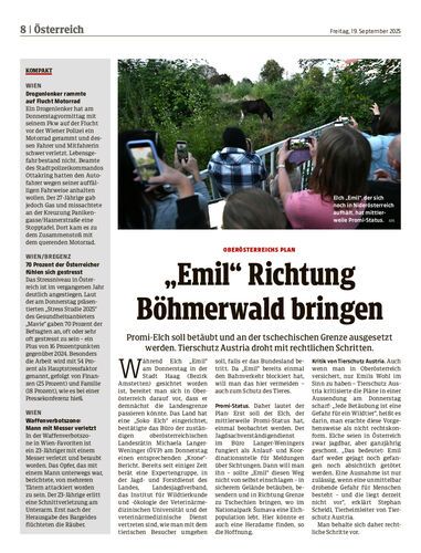 Promi-Elch soll betäubt und an der tschechischen Grenze ausgesetzt werden. Tierschutz Austria droht mit rechtlichen Schritten.