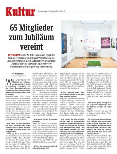 Interview. Zum 20-Jahr-Jubiläum zeigt die Künstlervereinigung Kunst Vorarlberg eine Ausstellung von allen Mitgliedern. Präsident Hermann Präg verweist im Interview bescheiden auf die gelebte Demokratie.