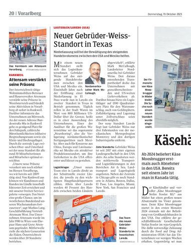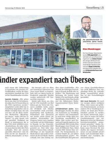 Ab 2024 beliefert Käse Moosbrugger erstmals auch Abnehmer in den USA. Bereits seit einem Jahr ist man in Kanada tätig.