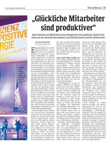 Beim Health and Mind Festival im Bregenzer Festspielhaus drehte sich alles um die mentale Gesundheit, das Glücklichsein und die Arbeitswelt.
