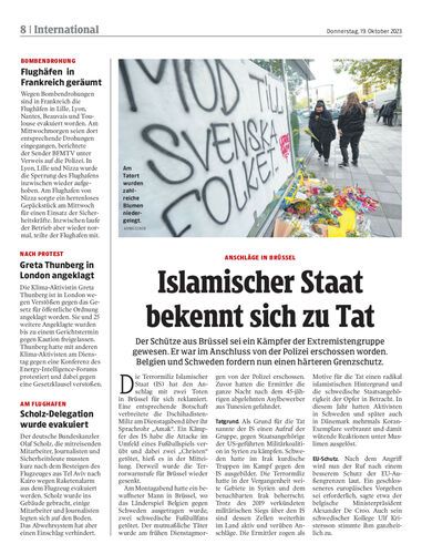 Der Schütze aus Brüssel sei ein Kämpfer der Extremistengruppe gewesen. Er war im Anschluss von der Polizei erschossen worden. Belgien und Schweden fordern nun einen härteren Grenzschutz.