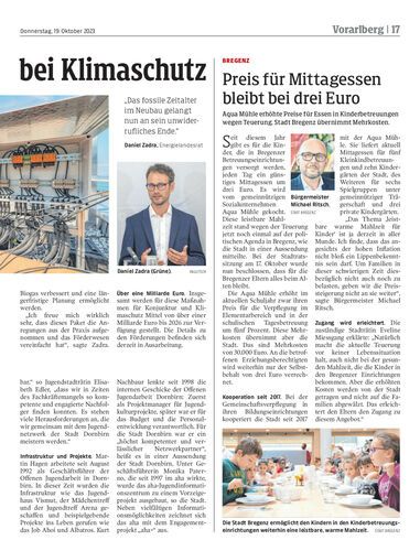 Aqua Mühle erhöhte Preise für Essen in Kinderbetreuungen wegen Teuerung. Stadt Bregenz übernimmt Mehrkosten.