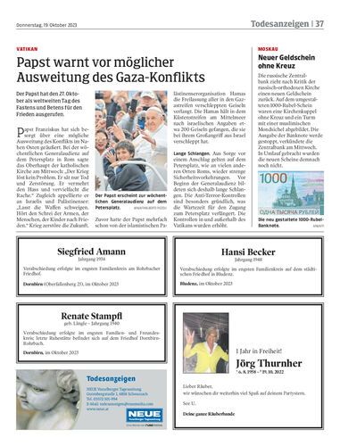Der Papst hat den 27. Oktober als weltweiten Tag des Fastens und Betens für den Frieden ausgerufen.