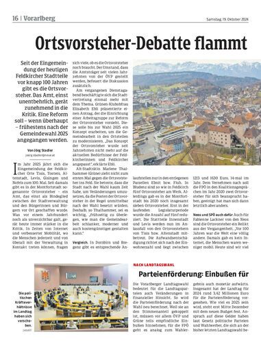 Seit der Eingemeindung der heutigen Feldkircher Stadtteile vor knapp 100 Jahren gibt es die Ortsvorsteher. Das Amt, einst unentbehrlich, gerät zunehmend in die Kritik. Eine Reform soll – wenn überhaupt – frühestens nach der Gemeindewahl 2025 angegangen werden.