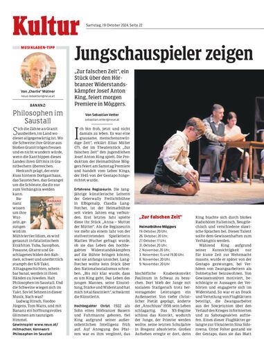 „Zur falschen Zeit“, ein Stück über den Hörbranzer Widerstandskämpfer Josef Anton King, feiert morgen Premiere in Möggers.