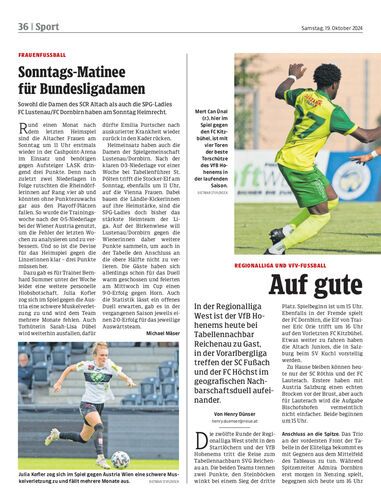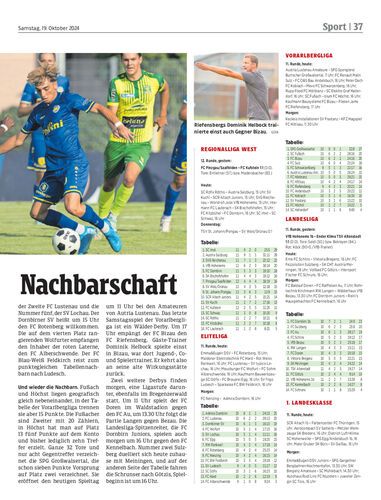 In der Regionalliga West ist der VfB Hohenems heute bei Tabellennachbar Reichenau zu Gast, in der Vorarlbergliga treffen der SC Fußach und der FC Höchst im geografischen Nachbarschaftsduell aufeinander.