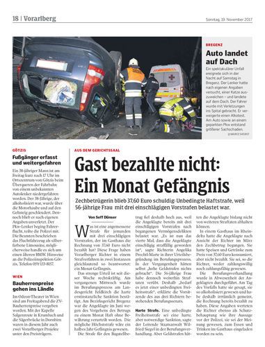 Gast bezahlte nicht: Ein Monat Gefängnis