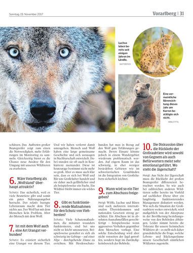Frage & Antwort. Wildökologe Hubert Schatz und Gernot Heigl, Geschäftsführer der Vorarlberger Jägerschaft, beantworten die wichtigsten Fragen zur Rückkehr der Großraubtiere.