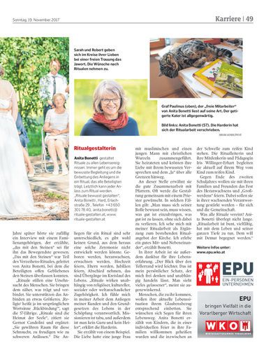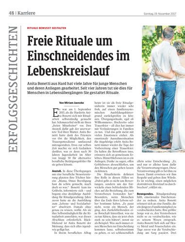 Anita Bonetti aus Hard hat viele Jahre für junge Menschen und deren Anliegen gearbeitet. Seit vier Jahren tut sie dies für Menschen in Lebensübergängen: Sie gestaltet Rituale.