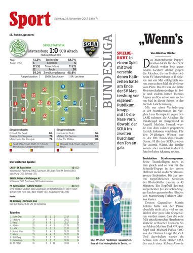 Spielbericht. In einem Spiel mit zwei verschiedenen Halbzeiten hatte am Ende der SV Mattersburg vor eigenem Publikum knapp mit 1:0 die Nase vorn. Obwohl der SCRA im zweiten Durchlauf den Ton angab.