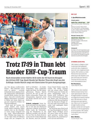 Trotz 17:19 in Thun lebt Harder EHF-Cup-Traum