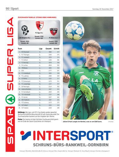 Bregenzer Unentschieden beim Angstgegner aus Schwaz