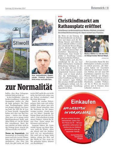 Vorarlbergs Landeshauptmann Markus Wallner schaltete Christbaumbeleuchtung ein. Baum kommt aus Frastanz.