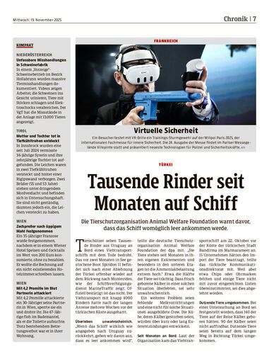 Die Tierschutzorganisation Animal Welfare Foundation warnt davor, dass das Schiff womöglich leer ankommen werde.