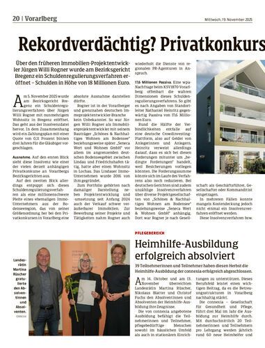 Über den früheren Immobilien-Projektentwickler Jürgen Willi Rogner wurde am Bezirksgericht Bregenz ein Schuldenregulierungsverfahren eröffnet – Schulden in Höhe von 18 Millionen Euro.